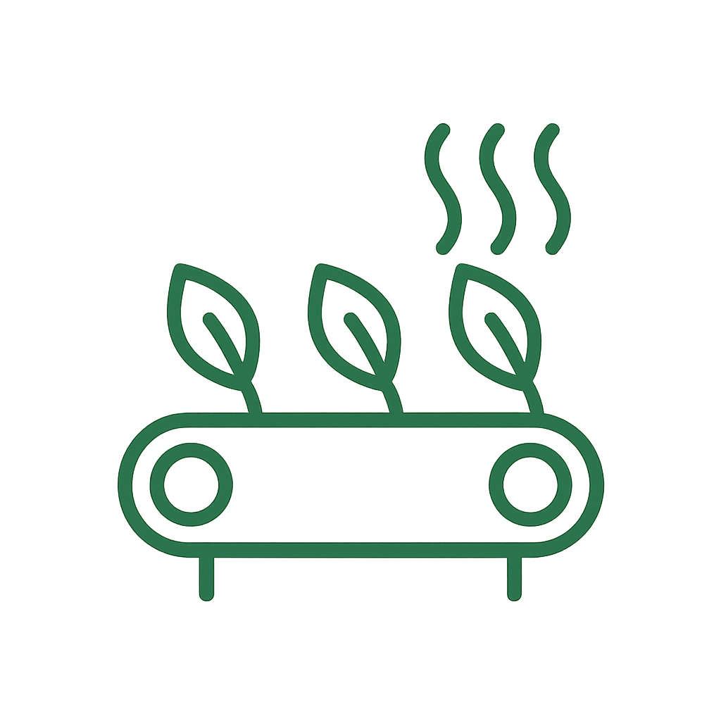 A diferencia de la producción industrial tradicional, nuestra yerba se seca de forma natural, mediante el sistema de cinta, sin la intervención de cámaras o procesos agresivos.